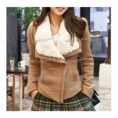 Khaki Cotton Wool Korean Style Winter Women's Jackets & Coats |
