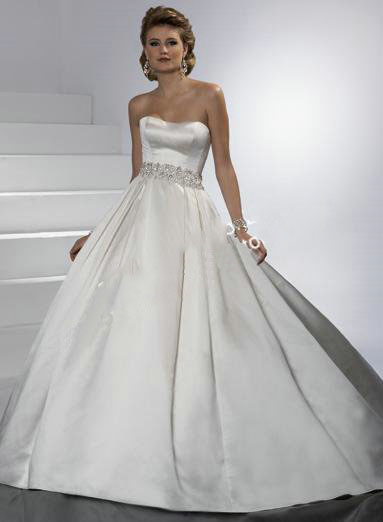Lace-up Back Gorgeous Princess Satin Beaded Strapless Wedding Dresses |