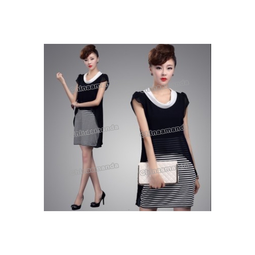 Ladies' False Tow Piece Asymmetrical Chiffon Stripes Tail Dresses for Women |