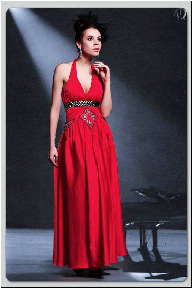 Lady Wedding Dress D30102 Red Long Style Dress A-line Halter Floor Length |