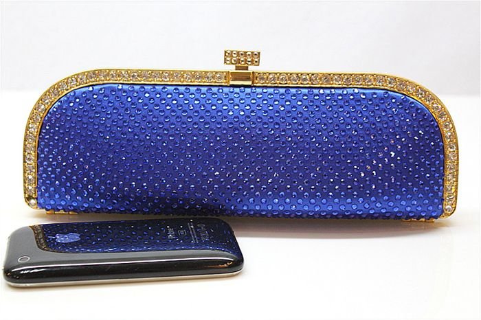 Lady's Clutch Unique Blue Color Shiny Crystal Evening Bags |