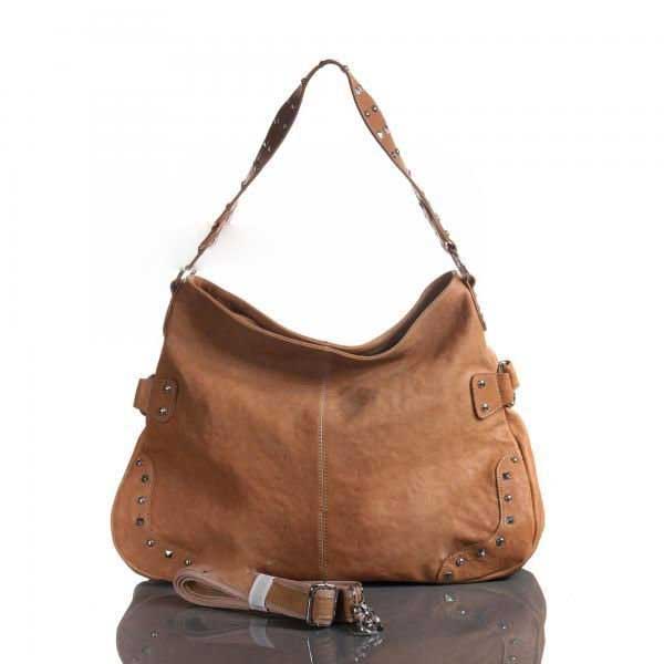 Lambskin Leather Hobo Bag with Studs - Apricot |