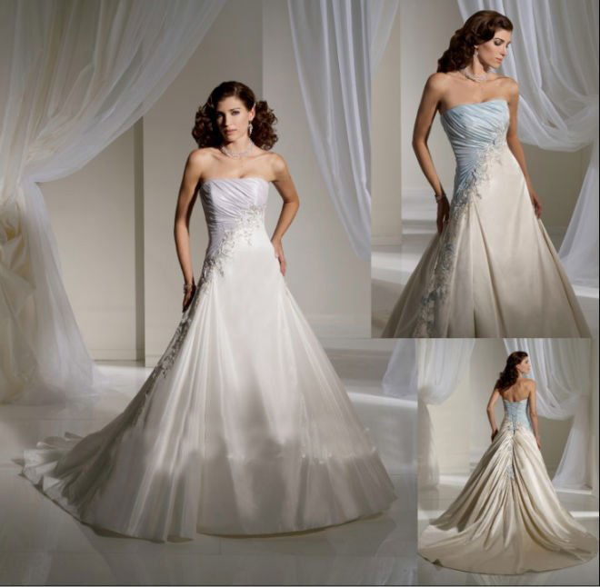 Leading Style Satin Applique Strapless A Line Wedding Dress |