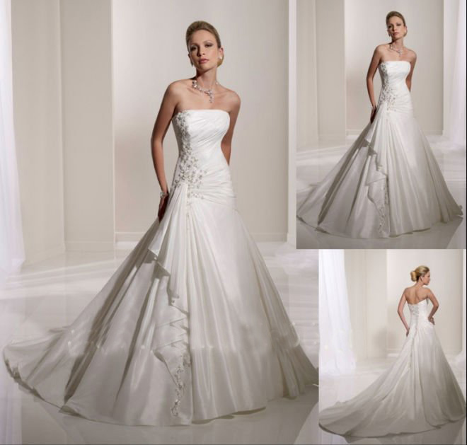 Leading Style Satin Strapless Appliqued A Line Wedding Dresses |