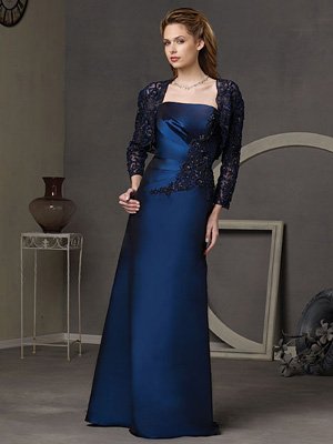 MBD50 Free Shipping 2011 A-Line Strapless No Waist Princess Seams Long Satin Lace Mother of The Bride Dresses |