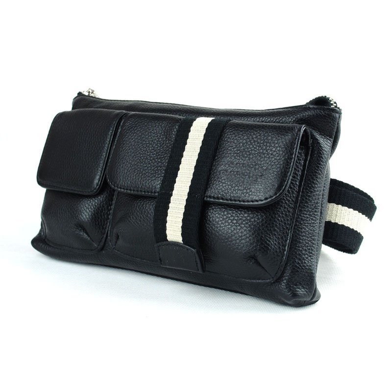 Men' Black Zipper Real Cow Leather Waist Pack |