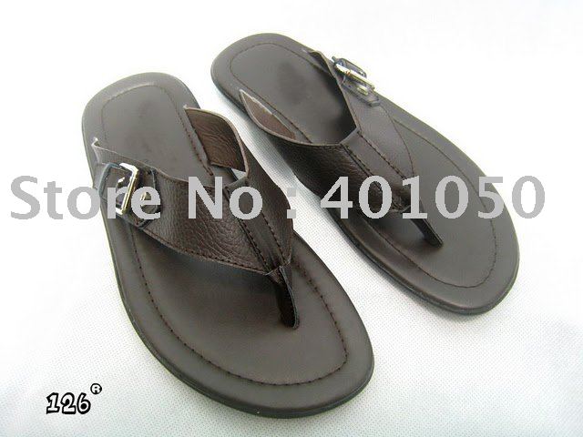 Men's Brown Genuine Leather Herringbone Baboosh Chinela Slippers |