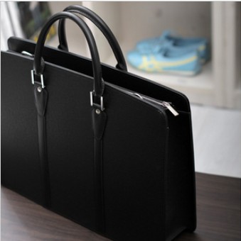 Men's Fashion Genuine Leather Business Computer Black Shoulder Bags |
