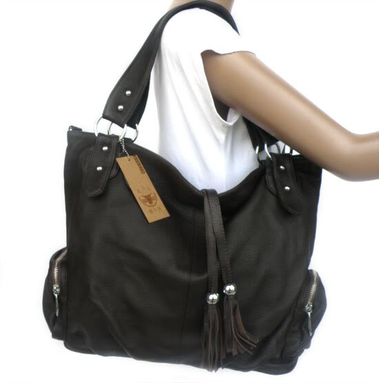 New Fashion Design 100% Genuine Leather Lady Women's Dark Brown Shoulder Bag Handbag Messenger Purse HOBO
