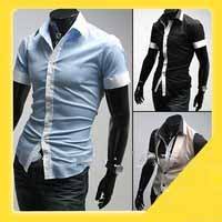 Free Shipping New Mens Shirts Short Sleeves Slim Fit Stylish Dress Shirts Colour:Blue,White,Black Y0125