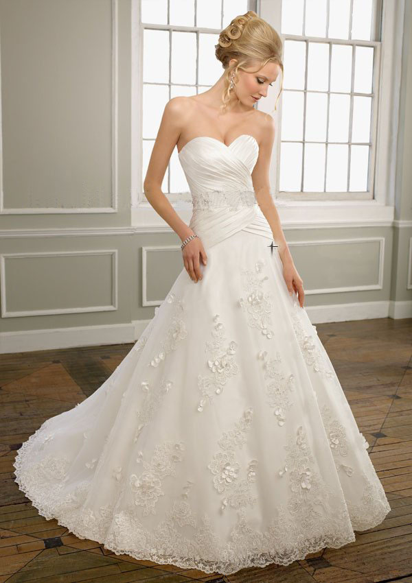 Off-the-shoulder Ruffles Chic & Modern Appliques Tulle Court Train Wedding Dresses |
