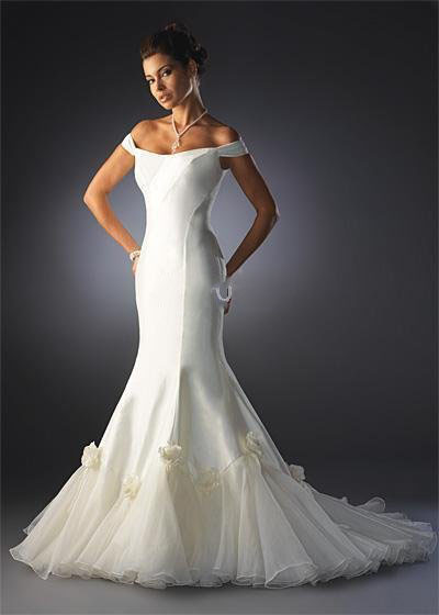 Off-The-Shoulder Stain Organza Trumpet Floor-Length Wedding Dresses |
