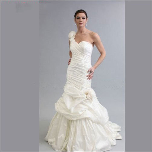 Use: Bride Place of Origin: Jiangsu China (Mainland) Feature: Dry Cleaning,Plus Size,Was... Brand Name: Wayer Hemline: Floor-Length Fabric Type: Taffeta Technics: Ruffle Design: One-Shoulder Silhouette: Trumpet / Mermaid Style: Classic Material: 100% Polyester Model Number: HL-WD2088 Supply Type: OEM Service Decoration: handwork flower Size: Optional,custom size Color: white,ivory,champagne Payment: Paypal,Escrow,Western Unio...