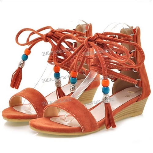 Orange Lace Up With Colourful Beads PU Leather Women's Sandals |