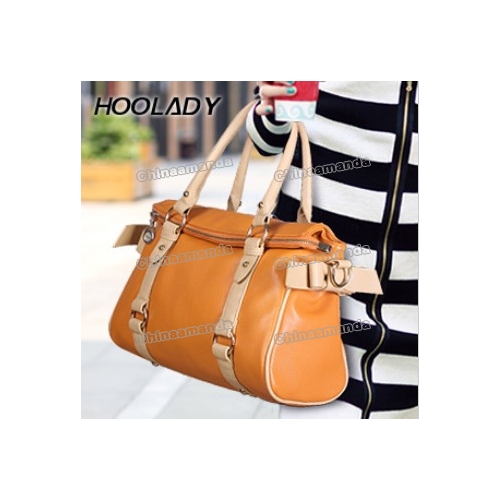 Orange With Beige Handle Biw Bow On Fashion Casual Shoulder/Tote Dual Function Bags |