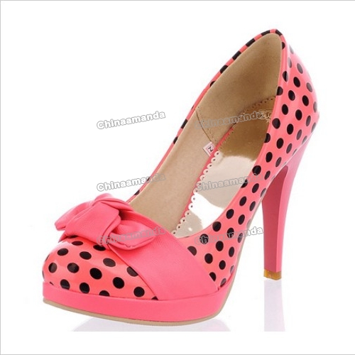 Pink High Heel Black Small Dots With Platform Women's Casual Shoes |