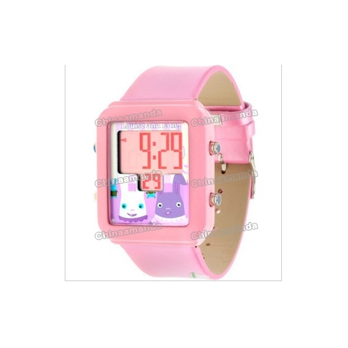 Pink Leather Band Rabbits Images On Kids' Watches |
