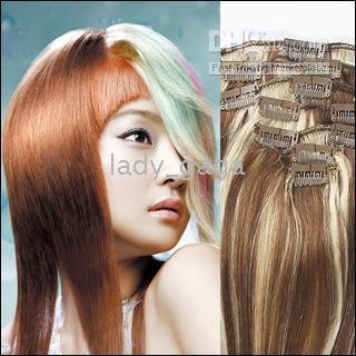 How to attach: 1. Open the clip on your hair extensions by holding the top section and gently pulling backwards by placing finger on each end of the clip. 2. Locate the area where you want to insert. Using a brush or comb or your fingers, part your hair and lift the section up and pin or clip it out of the way. Slide the clip into place by pressing on both sides - make sure the section is lying flat. When you hear it click, you will know it is secure. Run your fingers across the top to make sure the section is lying flat. 3. Now comb your own hair down over the Hair Extensions and gently comb to blend hair: See the instructions for adding volume and length. 4. Now repeat these same steps using as many of the sections as you wish to achieve the amount of volume desired. How to remove : Simply open the clip by gently pulling backwards until you hear the clip release. Then gently remove the section being careful not to pull your hair. It is suggested to move the placement of your sections slightly every couple of wearing. This will allow the clip to rest in a different area preventing too much stress on your hair. How to care human hair extension: Improper wash or process probably make the hair dry, easy to fall down or tangle. How you care for your extension will be the ultimate determining factor. Please refer to local professional hairdresser for professional tip . The hair can last at least several month in proper way. 1) wash it by the most mild shampoo or one specially formulated for chemically treated hair, and clean in warm water as well. Please use the shampoo recommended by local professional hairdresser. 2) comb the wet hair gently by a large toothed comb and drying naturally is best. 3) please straighten hair if hair extension is straight when it is wet ; please gel hair if it is wavy. 4) don`t blow hair root too nearly by dryer; don`t grasp hair root when washing. 5) don`t cover hair extension under sun in a long time ; don`t swim wearing hair extension. | ![]() | |||||||||||||||||