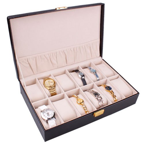 > Tastefully protects, stores, and organizes up to 12 watches.