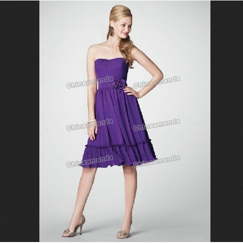 Purple Chiffon Ruched Strapless Backless Bridesmaid Dresses |