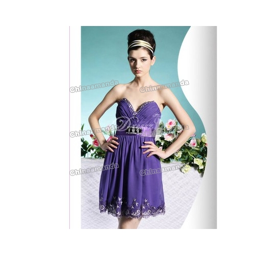 Purple Embroidery Chiffon Sweetheart Strapless Mini Homecoming Dresses |