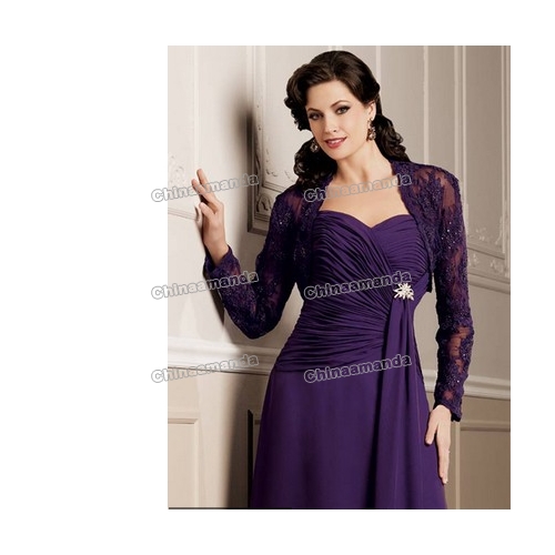 Purple Long Sleeves Lace Chiffon Mother of the Bride Dresses |