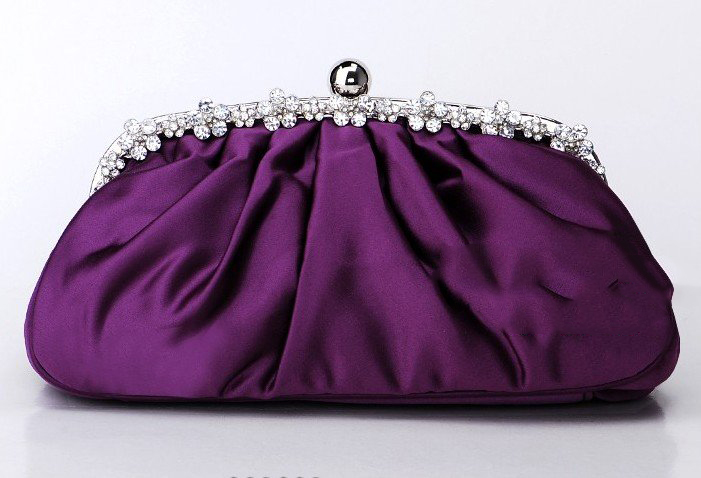 Purple Satin Diamond Handbag Clutch Purse |