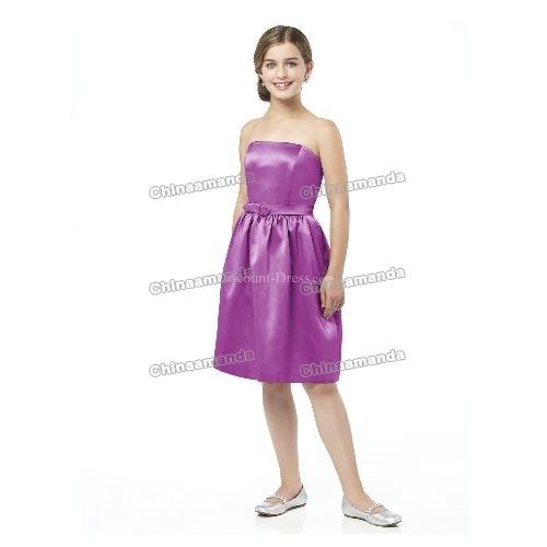 Purple Satin Strapless With Sashes Knee Length Junior Bridesmaid Dress |