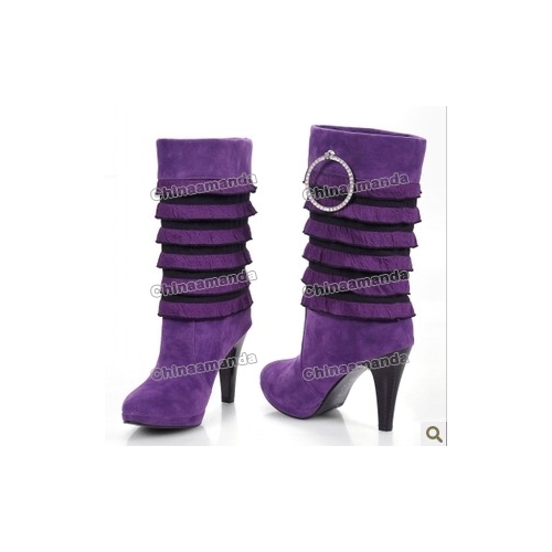 Purple Satin With Stripes High Heel Women's Boots |