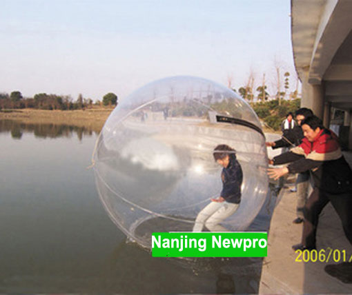 While riding inside of the balls, you can walk or actually, run on the water, that is...With a little practice.