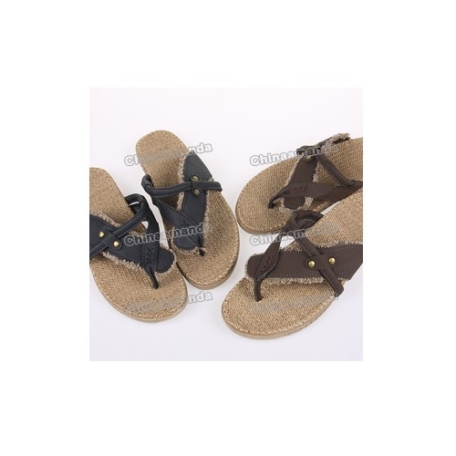 Real Leather Straw Bottom Casual Men's Flip Flops |
