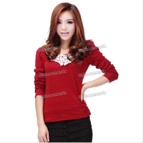 Red Lace Long Sleeves Slim Fashion Women's Tank Tops |