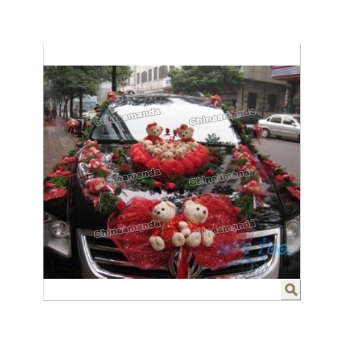 Red Lovely Bear Full Body Decorated Flowers & Wreaths |