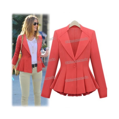 Red Office Lady Ruffles Suit Style Women's Jackets & Coats |