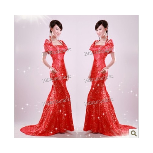 Red Short Sleeves Floor Length Cheongsam Wedding Dresses |