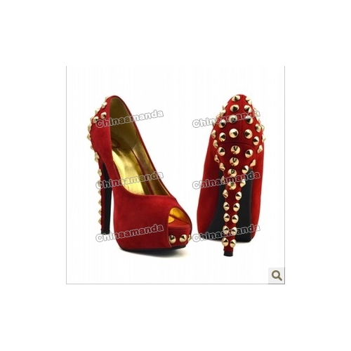 Red Super High Heel Satin With Rivets Women's Dress Shoes |