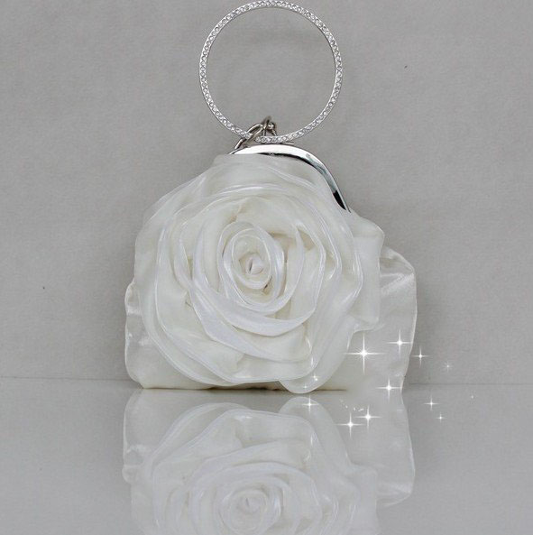 Rose Flower Style Satin and Organza Lady's White Evening Bags |