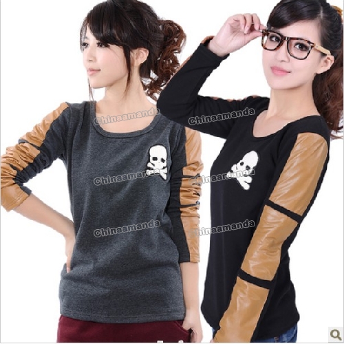 Round Collar PU Leather Cotton Skull Images On Women's Tank Tops |