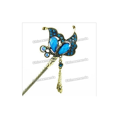 Royal Blue Tassel Butterfly Shape Shiny Diamond Hair Jewelry |