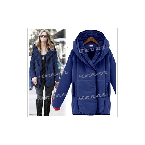 Royal Blue Windproof Loose Cotton Women's Jackets & Coats |