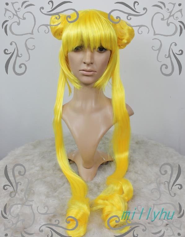 Place of Origin: Guangdong China (Mainland) Brand Name: cosplay wig Hair Grade: Remy Hair Material: Synthetic Hair Virgin Hair: No Model Number: Sailor Moon wig Weight: 0.5 Type: Other Main color: yellow Material: Kanekalon fibers Brand New: Yes Feature: Party cosplay wig Standard Size: Adjust,one size fit more Function: Anime cosplay