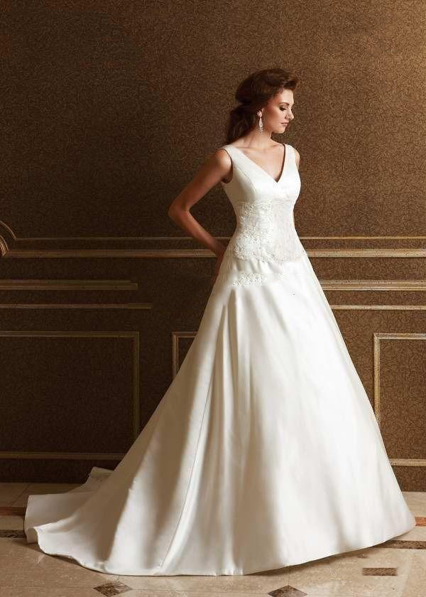 Satin & Chiffon V-neck & Sleeveless White Luxury Wedding Dresses |