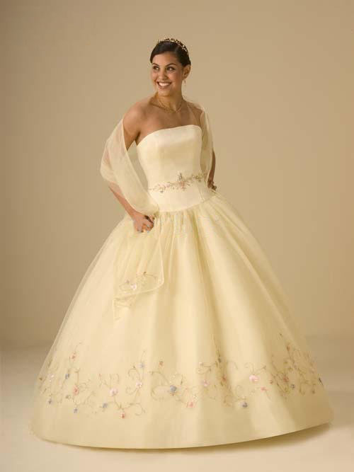 Satin Material Appliques Strapless Ball Gown Floor-Length Wedding Dresses |