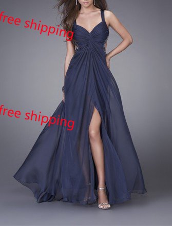 free shipping poly chiffon dark blue evening dress front slit spaghetti strap Guaranteed quality 100% wholesale priceUS$ 105.26 - US$ 126.32/piece |