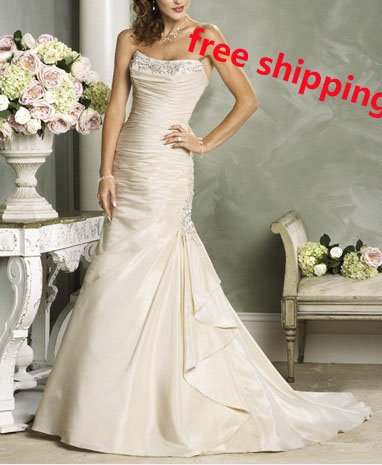 free shipping wedding dresses A-line/long trace/ivory/white/sliver/champagne/sleeveless/long trace/top quality low priceUS$ 147.37 - US$ 168.42/piece |