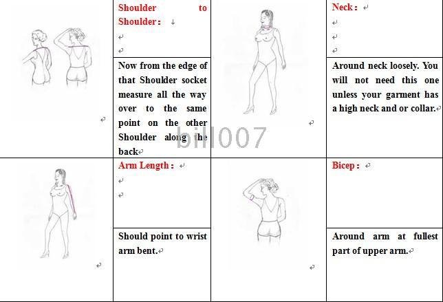 Please follow the measurement instructions, and measure yourself carefully. After you pay for me ,please tell me your exact measurement ( Bust .Waist .Hips .Shoulder to Waist .Outer Leg .Shoulder to Shoulder . Stature/Height ) in 24 hours ,so that you can receive the dress quickly !If you need any other color or special requirement, please contact me by email and I will take care of your request personally.