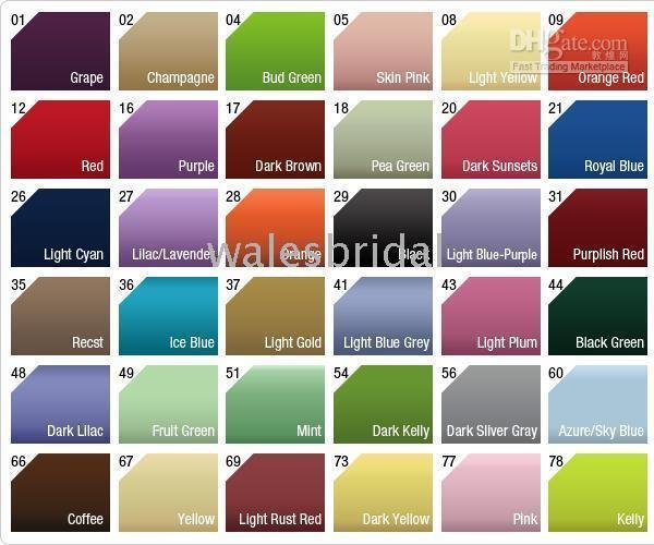Notice:Since computer screens have chromatic aberration, especially between CRT screen and LCD screen, we can not guarantee the color of the dress you get will be 100% similar as the color chart. And also different fabrics will show different color degree on the same color. So we can not accept any returned dress for sake of color. Please kindly understand us.