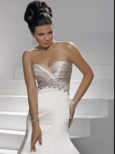 Sheath Criss-Cross Pleated Jewels Satin Sweep Train Wedding Dresses |