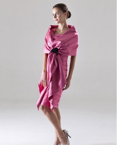 Sheath Square Knee-length Satin Zipper Fully lined Wedding Party Dress with A Wrap |