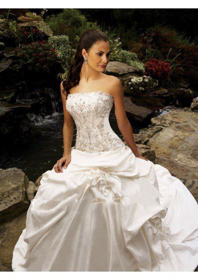 Item Type: Wedding Dresses Place of Origin: Shanghai China (Mainland) Belt Color: White,Red,Ivory Brand Name: NEW Dresses Length: Floor-Length Neckline: Strapless Silhouette: Ball Gown Wedding Dress Fabric: Taffeta Train: Chapel Train Color: Custom Colors